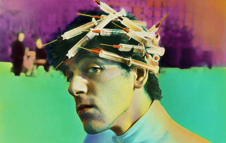 Hay una idea un sentimiento pero ¿besarse con MAScarilla? ¿exactamente cual es el mensaje? Título: desconocido
