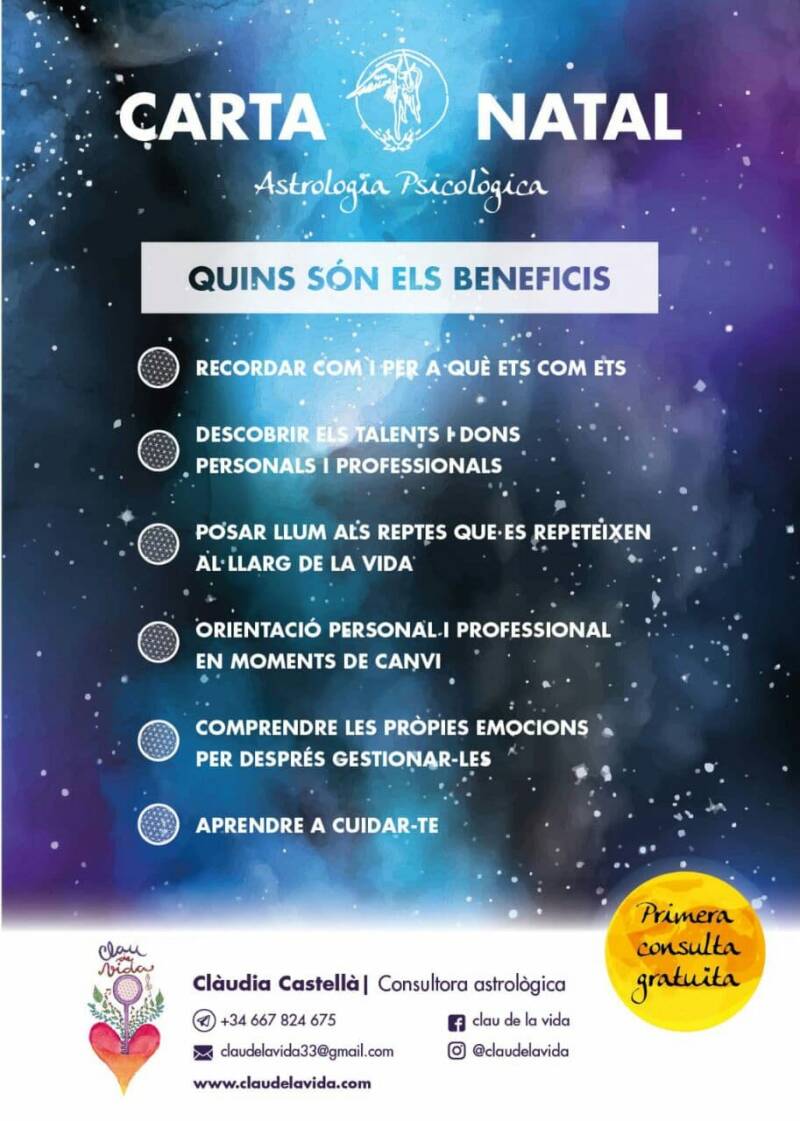 “Conocer tu Mapa Natal te ayuda en diferentes ámbitos de tu vida, pues en una consulta abordamos varias temáticas: podrás entender qué patrones están influyendo en tu vida y de qué manera; a qué comportamientos tiendes inconscientemente y que te pueden estar causando bloqueos; cuáles son los puntos fuertes en los que te puedes apoyar; cuál fue el propósito de tu alma al encarnar; temas laborales y financieros; asuntos relacionales y familiares; búsqueda del momento más adecuado para realizar cambios, mudanzas, para tomar decisiones importantes; profundizar en el origen de miedos, ansiedades u otras dificultades,…”