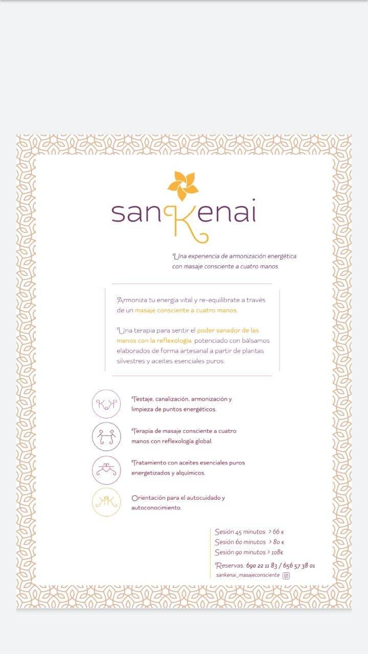 También, de manera presencial, si alguien anda por la zona ofrece sesiones de masaje con reflexología de manera individual a 4 manos junto con su compa Samuel, SanKenai, donde trabajan de forma energética en todos los cuerpos.
